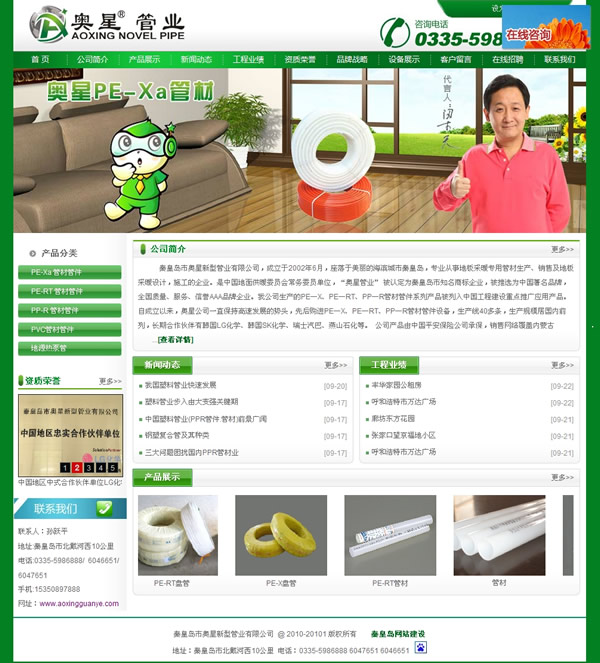 秦皇島市奧星新型管業(yè)有限公司,成立于2002年6月,座落于美麗的海濱城市秦皇島,專業(yè)從事地板采暖專用管材生產(chǎn)、銷售及地板采暖設(shè)計(jì),施工的企業(yè)。是中國(guó)地面供暖委員會(huì)常務(wù)委員單位,“奧星管業(yè)”被認(rèn)定為秦皇島市知名商標(biāo)企業(yè),被推選為中國(guó)著名品牌,全國(guó)質(zhì)量、服務(wù)、信譽(yù)AAA品牌企業(yè)。我公司生產(chǎn)的PE—X、PE—RT、PP—R管材管件系列產(chǎn)品被列入中國(guó)工程建設(shè)重點(diǎn)推廣應(yīng)用產(chǎn)品。