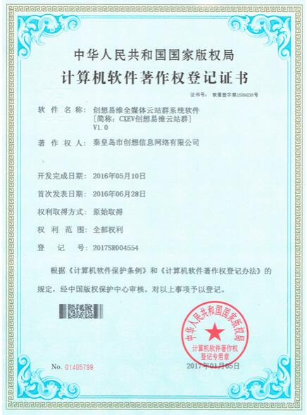 創(chuàng)想易維全媒體云站群系統(tǒng)軟件著作權(quán)證書日前正式獲得國家版權(quán)局批準(zhǔn),創(chuàng)想公司在云平臺、智慧型、大數(shù)據(jù)應(yīng)用的自主產(chǎn)品研發(fā)的道路上將奮勇前進(jìn),越飛越高。